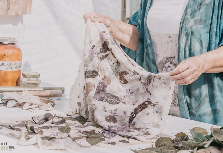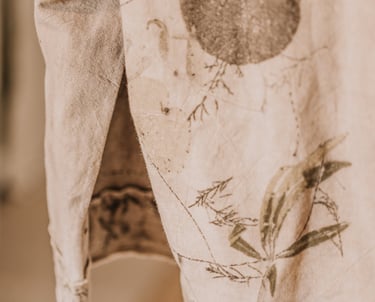 Mi visión para crear textiles sostenibles con tintes naturales y ecoprint se basa en un profundo respeto tanto por el medio ambiente como por el proceso creativo. Me inspira la creencia de que se pueden elaborar textiles hermosos y funcionales sin comprometer la salud de nuestro planeta. Mediante el uso exclusivo de tintes vegetales y técnicas conscientes, me esfuerzo por honrar el mundo natural, celebrar su paleta diversa y reducir el impacto medioambiental que suele asociarse a la producción textil tradicional.
