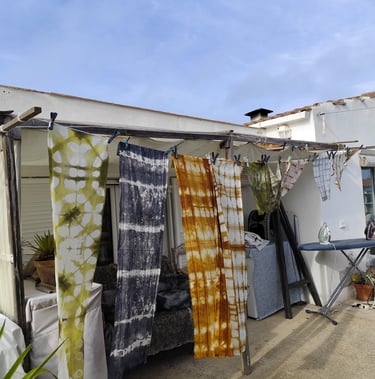 En medio de paisajes tranquilos e inspirados en los abundantes recursos naturales de la isla, mis talleres te invitan a relajarte y aprender el arte del teñido botánico y la impresión botámica. Descubre las técnicas conscientes y ecológicas que transforman hojas, flores y raíces en tejidos vibrantes y únicos.